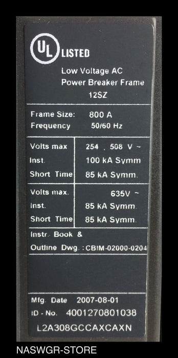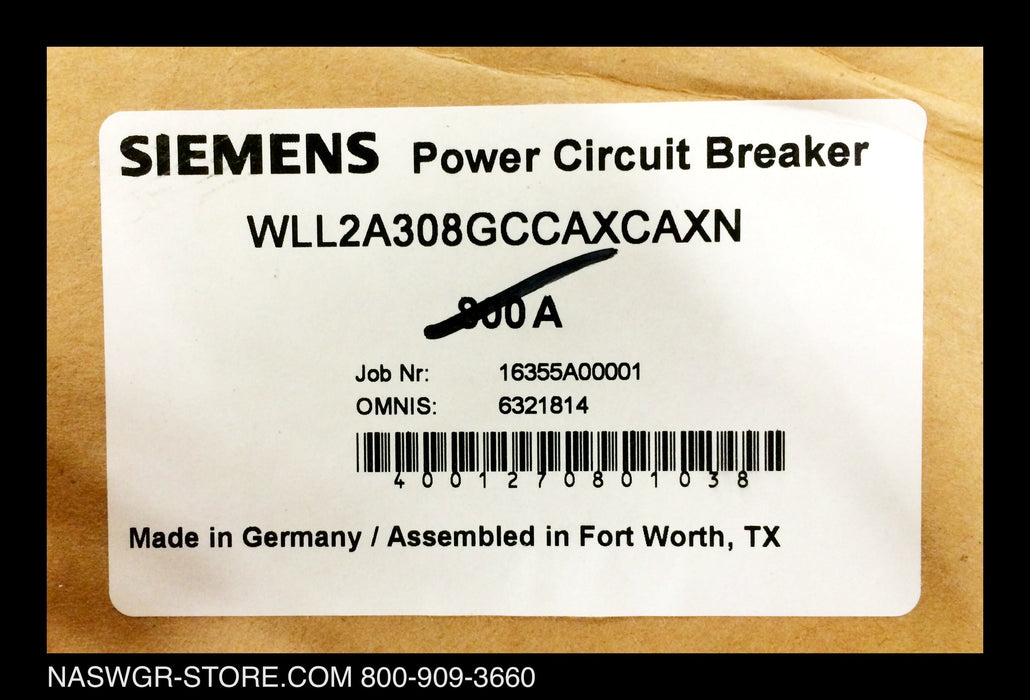 WLL2A308 ~ Siemens WLL2A308 / L2A308GCCAXCAXN Circuit Breaker 800 Amps