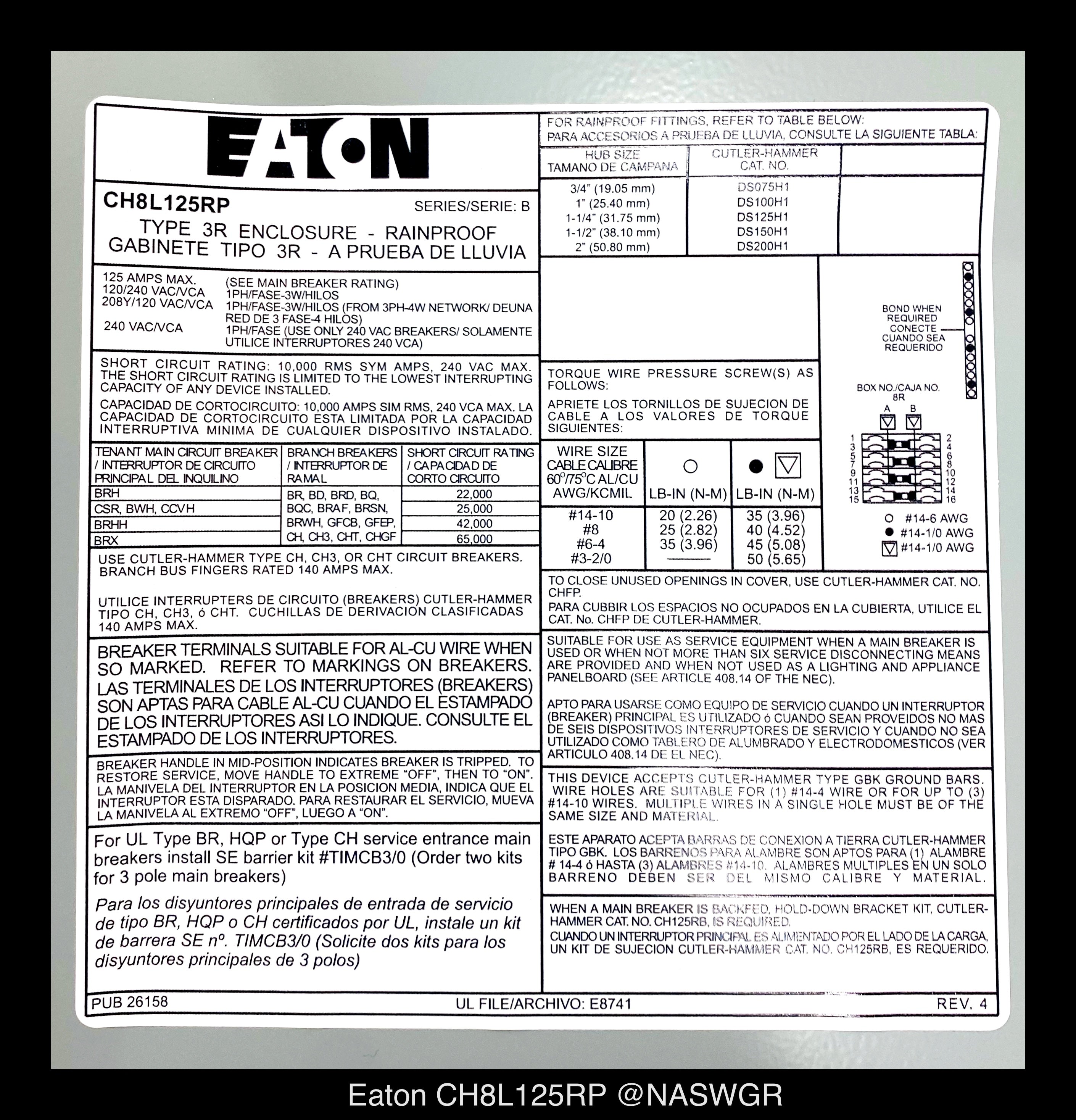 Each Unused CH8L125RP Loadcenter is Inspected Prior to Shipping.