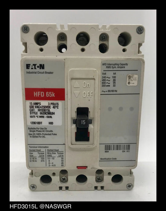 Eaton HFD3015L Molded Case Circuit Breaker - 15 Amp