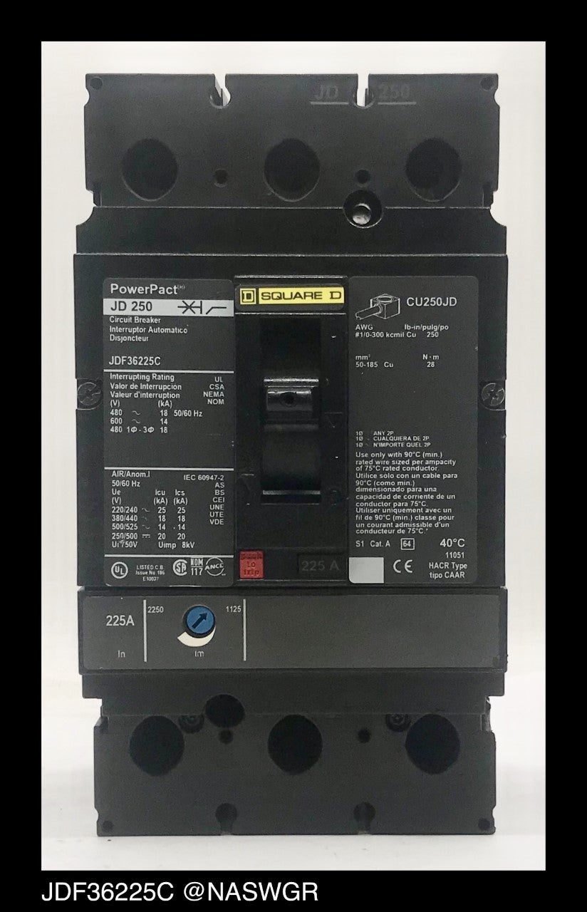 Square D JDF36225C Molded Case Circuit Breakers ~ 225 Amp